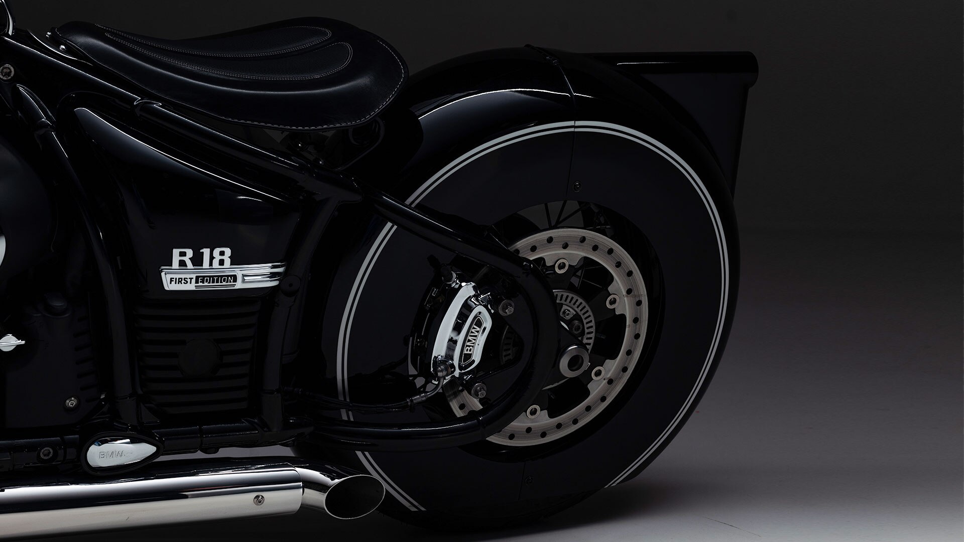 Con 8 mm de aire se funde el revestimiento en el depósito. Los colores clásicos con la icónica línea doble fluyen casi sin fisuras sobre la imponente pieza artesanal. Por supuesto, la pintura también adorna el guardabarros trasero que cubre 310 grados y encaja perfectamente con el frontal. Un mecanismo de bisagras permite el cambio de rueda. Las aberturas ubicadas con precisión permiten ver los discos de freno y el accionamiento. Esto también demuestra de qué está hecha el alma de la Spirit of Passion: respeta al máximo la R 18 y, a partir de ella, crea una auténtica obra de arte.